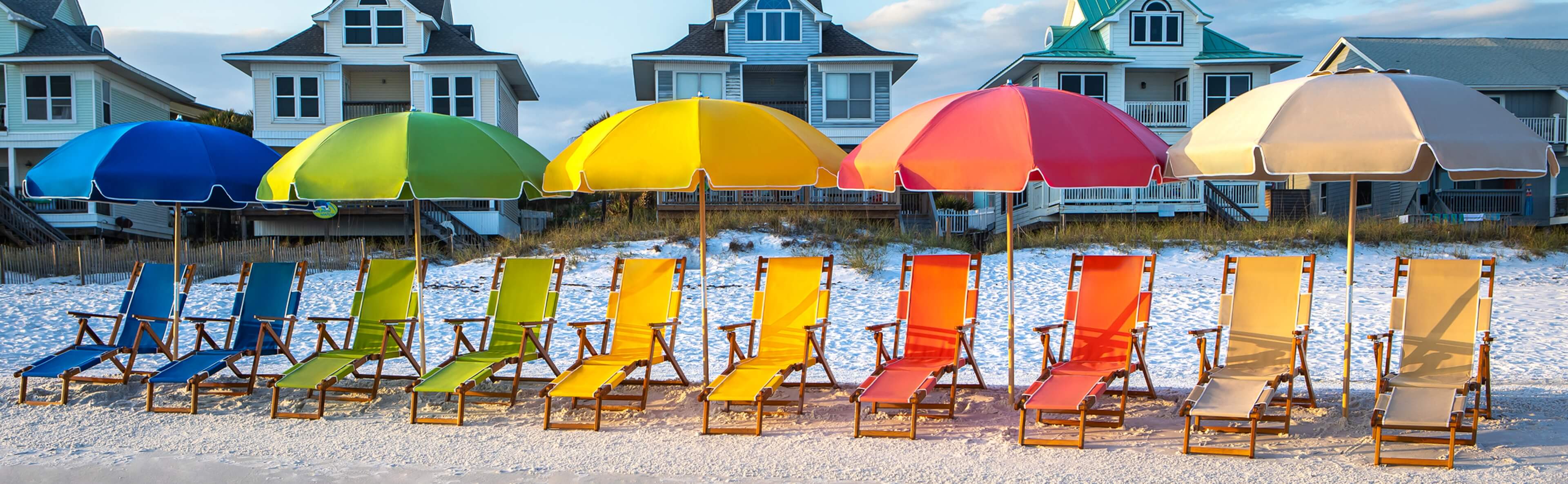 Manufactured with the most durable components, highest-quality woods, and beautiful 9 oz. marine grade acrylic fabrics, our commercial-grade beach umbrellas and loungers are the first choice for beach rental concessionaires, resorts, avid beachgoers and vacationers alike. Our umbrellas provide unmatched UV protection to help protect you and your family from the sun, while our loungers let you relax in style beneath the shade.
